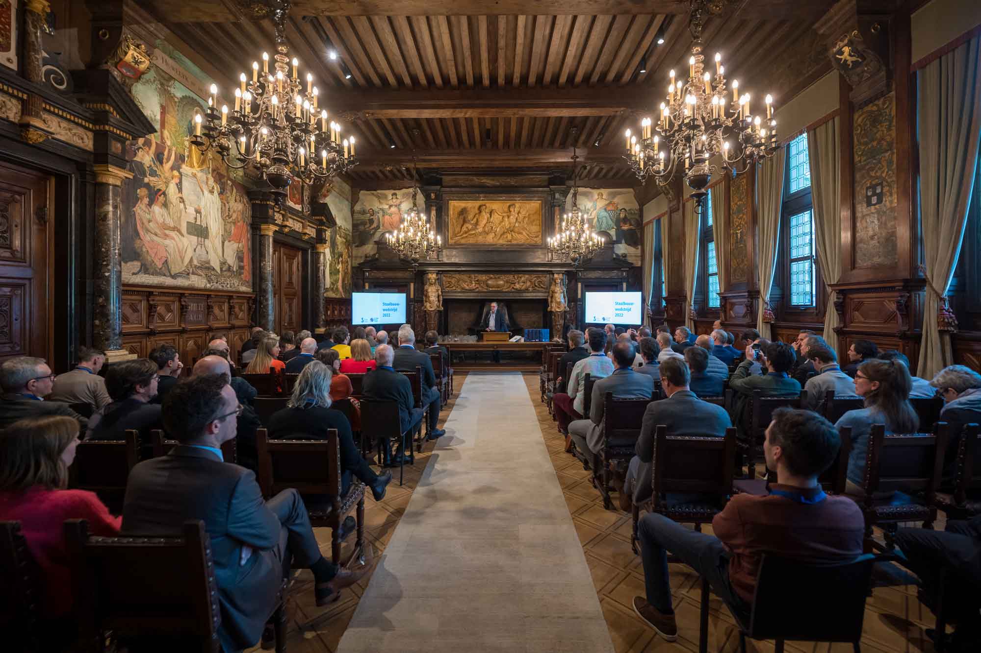 L'orateur principal, le professeur Wim Hoeckman, est revenu sur son impressionnante carrière dans la construction métallique. Il a également donné à son auditoire quelques sages leçons de vie (être "reconnaissant" plutôt qu'"orgueilleux") et a plaidé pour la préservation de notre savoir-faire en matière d'ingénierie et de construction de structures en acier dans les Pays-Bas.