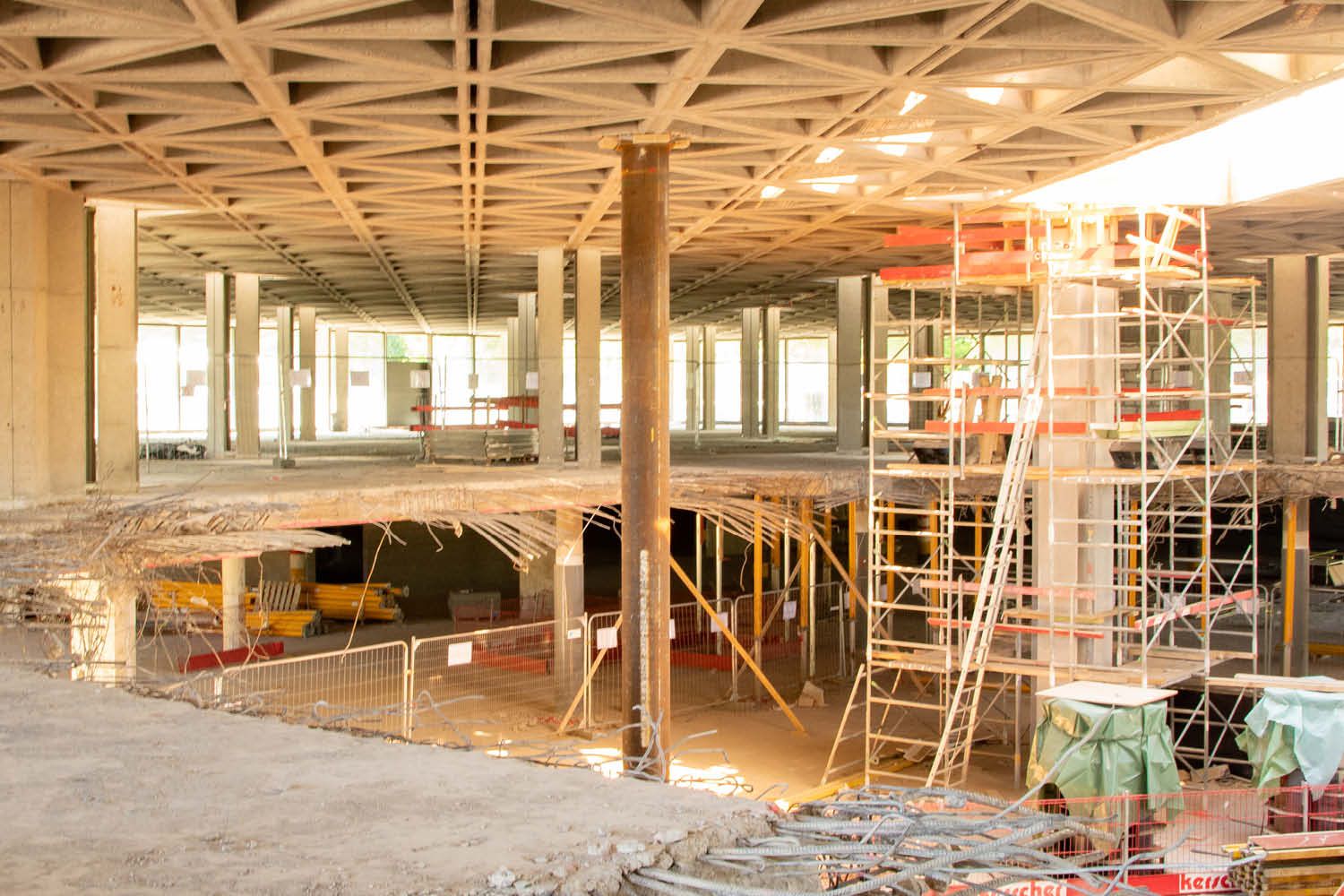 Le bâtiment emblématique de la «Royale Belge» à Watermael-Boitsfort, avec son vitrage couleur bronze et l’acier résistant aux intempéries («corten») de ses murs extérieurs, est en cours de rénovation et de restauration. Le bâtiment principal se compose d’une base carrée (structure en béton) de 88 par 88 m avec quatre étages, dont deux souterrains, et d’une superstructure (structure en acier) de 8 étages.