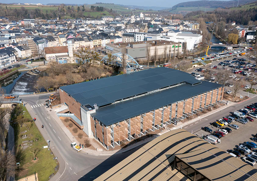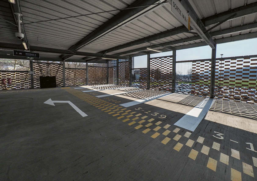 Deze publieke parkeergarage van drie verdiepingen is gebouwd in een overstromingsgebied en heeft een totale capaciteit van 502 plaatsen (inclusief een lift). De belangrijkste structurele elementen maken gebruik van gelaste plaatliggers op maat voor de kolommen en balken, gecombineerd met beton met behulp van deuvels. Om het gewicht van de constructie en de afmetingen van de profielen te beperken, zijn de kolommen en liggers vervaardigd in staalkwaliteit S460. Vooraf werd er in de fabriek een anticorrosiebehandeling toegepast. Doordat de balken zo gedimensioneerd zijn dat ze zelfdragend zijn bij de plaatsing van de vloerplaten, konden de werkzaamheden snel en efficiënt verlopen. Om het gebouw visueel te verfraaien, is een flexibele huid aan het metalen frame van de constructie bevestigd. Dit bestaat uit een gevlochten grid van staaldraden, waarin geëxtrudeerde stukken gebakken klei zijn aangebracht.